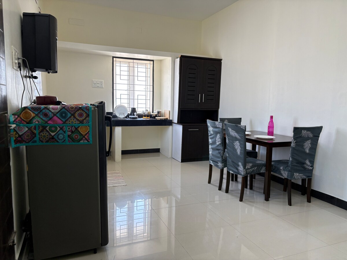 공항에서 가까운 곳에 위치한 가구가 완비된 2BHK 아파트. 최고의 위치: 공항과 IT 단지 근처에 있습니다. 업무 준비: 디지털 노마드용 고속 와이파이와 전용 업무 공간. 집의 편안함: 시설이 완비된 주방, 모든 침실에 에어컨, 스마트 TV. 공간: 넓고 아늑한 거실은 깨끗한 침구가 있는 침실과 깨끗하고 현대적인 욕실을 갖추고 있습니다. 게스트 이용: 아파트 전체를 단독으로 사용하실 수 있습니다. 안전한 주차 공간과 연중무휴 엘리베이터 이용을 제공합니다.