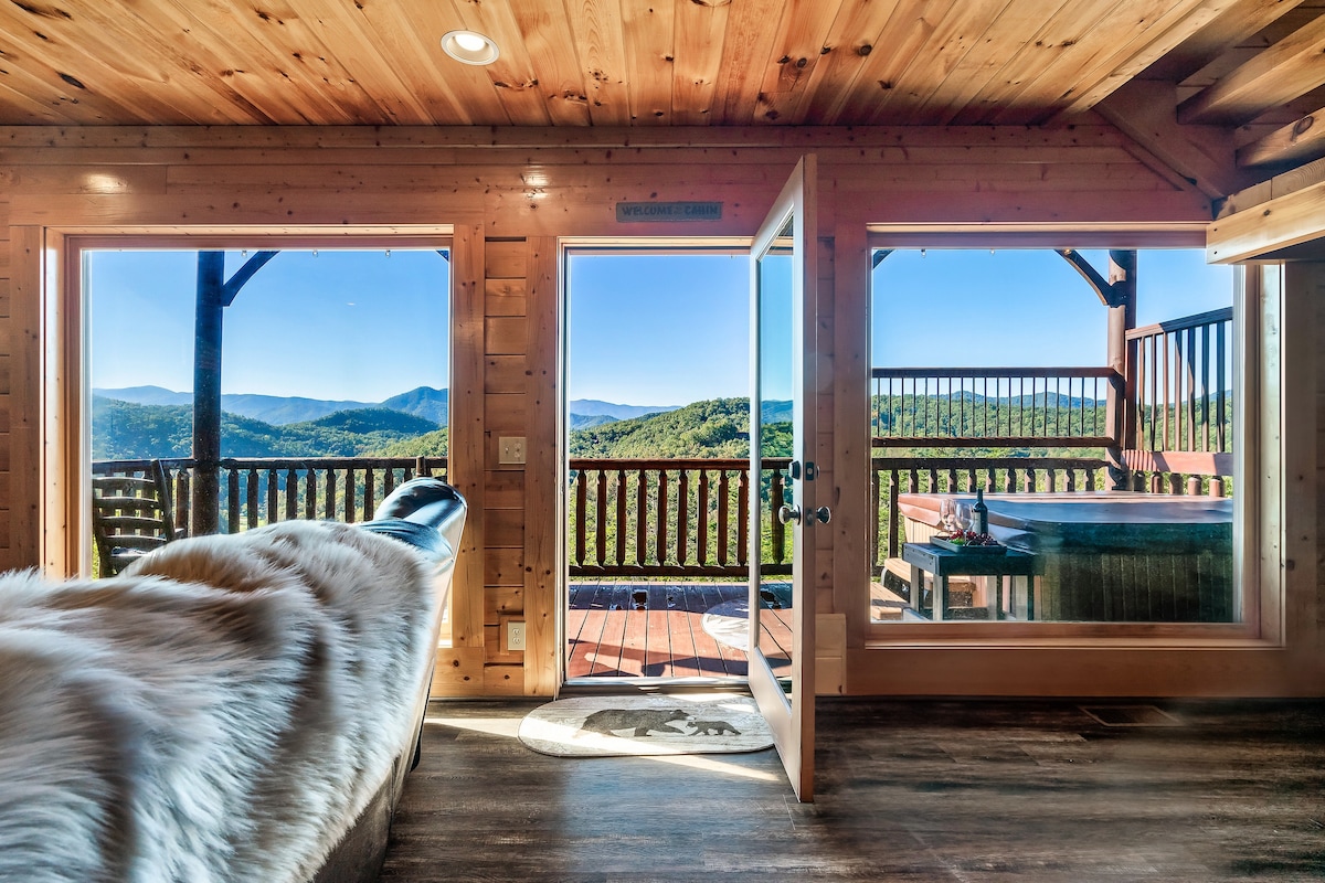 럭셔리한 통나무집, 전망, 게임룸, 온수 욕조, 극장!