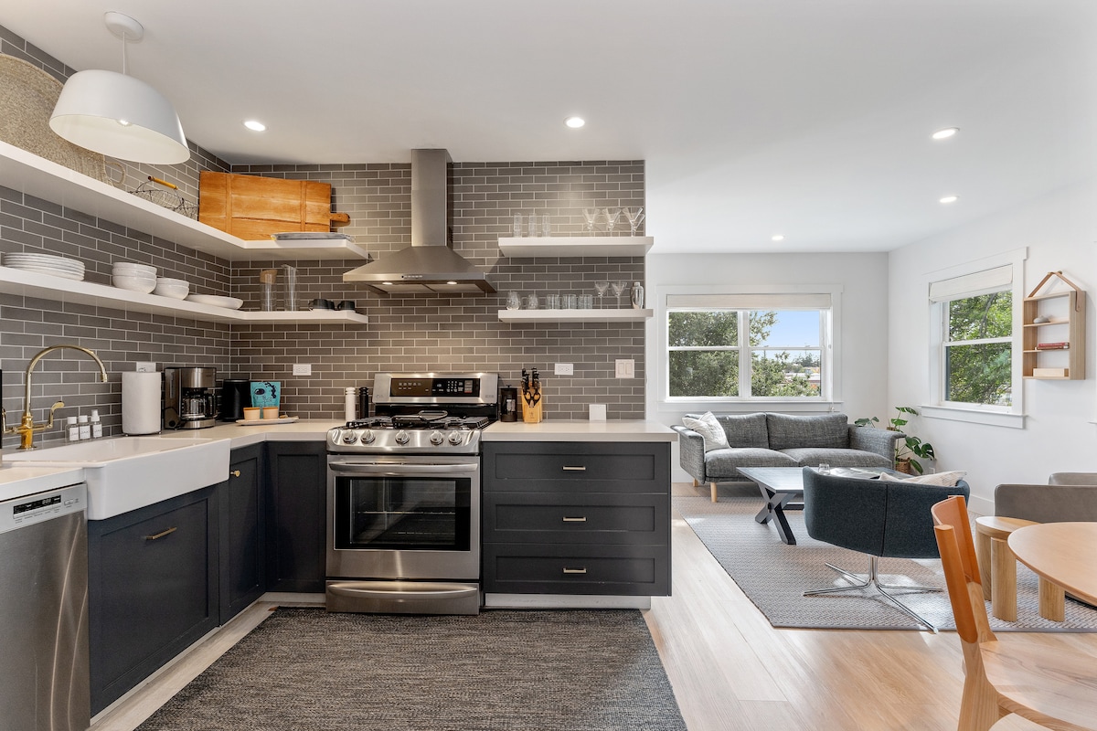 새로운 스마트 기차역 근처의 세련된 맞춤형 스튜디오 아파트. 와인 생산지, 포인트 레이즈, 샌프란시스코를 방문하고 싶은 분들에게 완벽한 위치입니다. 고속도로 진입이 용이하고 도보로 2블록 거리에 홀푸드가 있으며 도보로 10~15분 거리에 새로운 쇼핑 지역이 있습니다. 공항버스 정류장 도보 10분. 와인 한 잔을 즐길 수 있는 조용한 전용 파티오와 와플 바가 있는 간이 주방!다양한 종류의 와플과 커피를 만들어보세요. 매우 편안한 침대가 있습니다. 더욱 편안한 숙박을 위한 작은 손길이 많습니다.