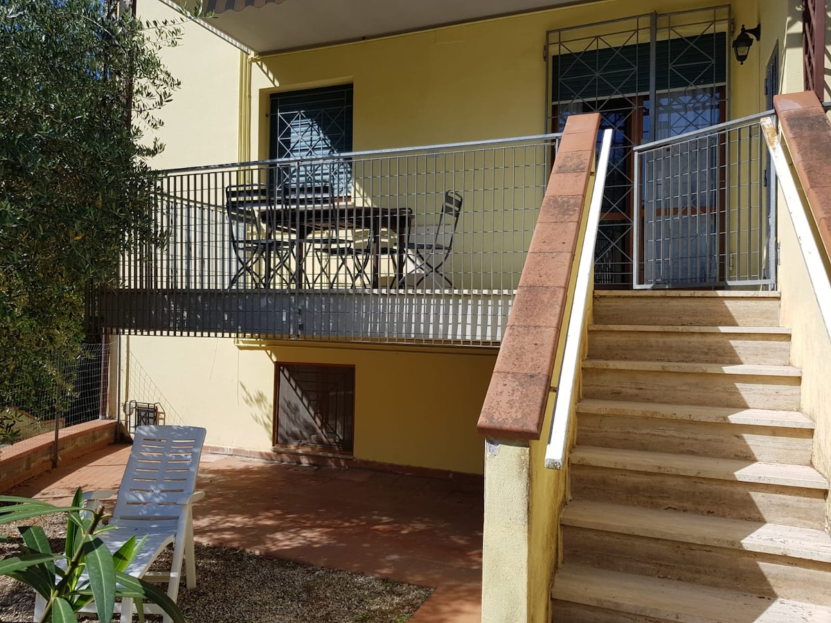 Rilassati con tutta la famiglia. Inserito in una casa indipendente circondata dal verde, l'appartamento è ampio e accogliente, arredato con cura. La cucina è attrezzata con piano a induzione è dotata di tutte le stoviglie. Il posto auto è privato. La terrazza sulla Corsica è arredata per il pranzo al aperto, i lettini per prendere il sole. Questa terrazza è coperta da un patio ed ha tende da sole. Il terrazzo è chiuso pertanto gli amici pelosi possono stare al sicuro.