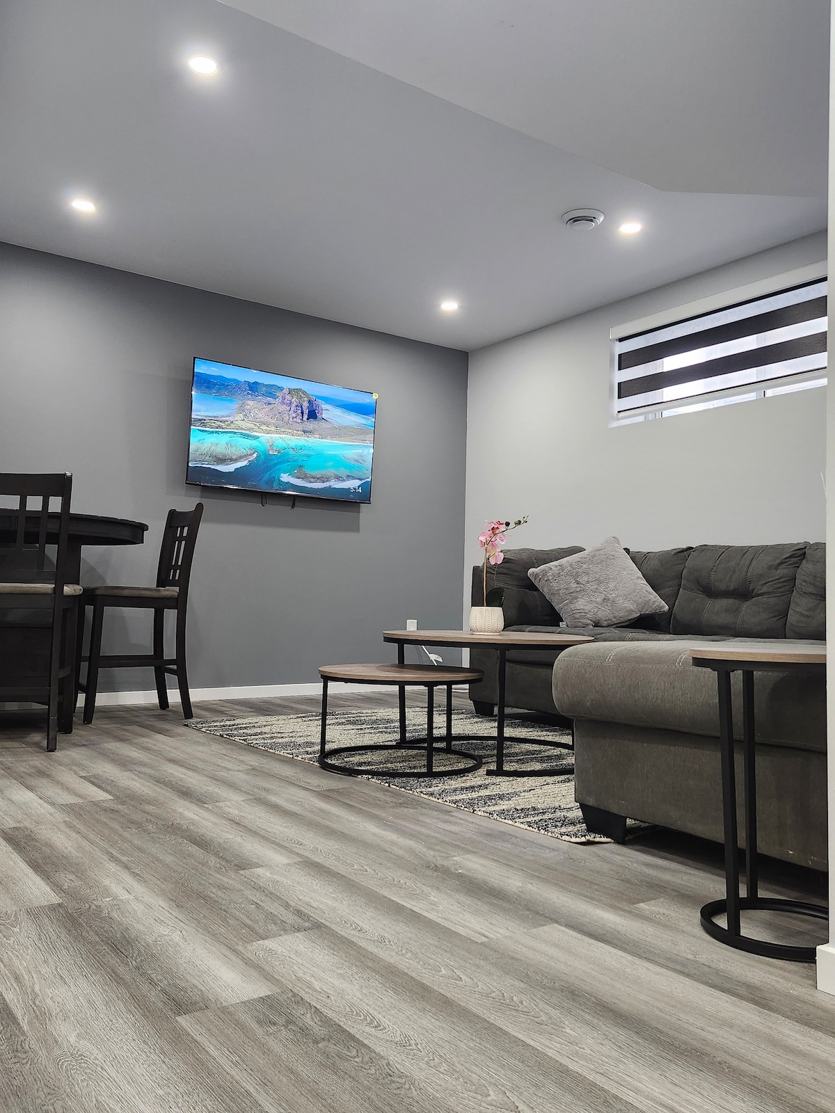 제 매력적인 에어비앤비 숙소에 오신 것을 환영합니다! 전용 화장실, 식사 공간, 거실이 있는 침실 1개의 지하 스위트를 만나보세요. 침실에 작은 작업 공간 테이블이 있는 아늑한 휴식을 즐겨보세요. 키패드가 장착된 별도의 출입문을 통해 게스트의 프라이버시가 보장됩니다. 지하 편의시설을 독점적으로 이용할 수 있습니다. 숙박 기간 중 차량 2대까지 편리하게 주차할 수 있습니다. 이 매력적인 숙소에서 휴식을 취하고 휴식을 취하세요!