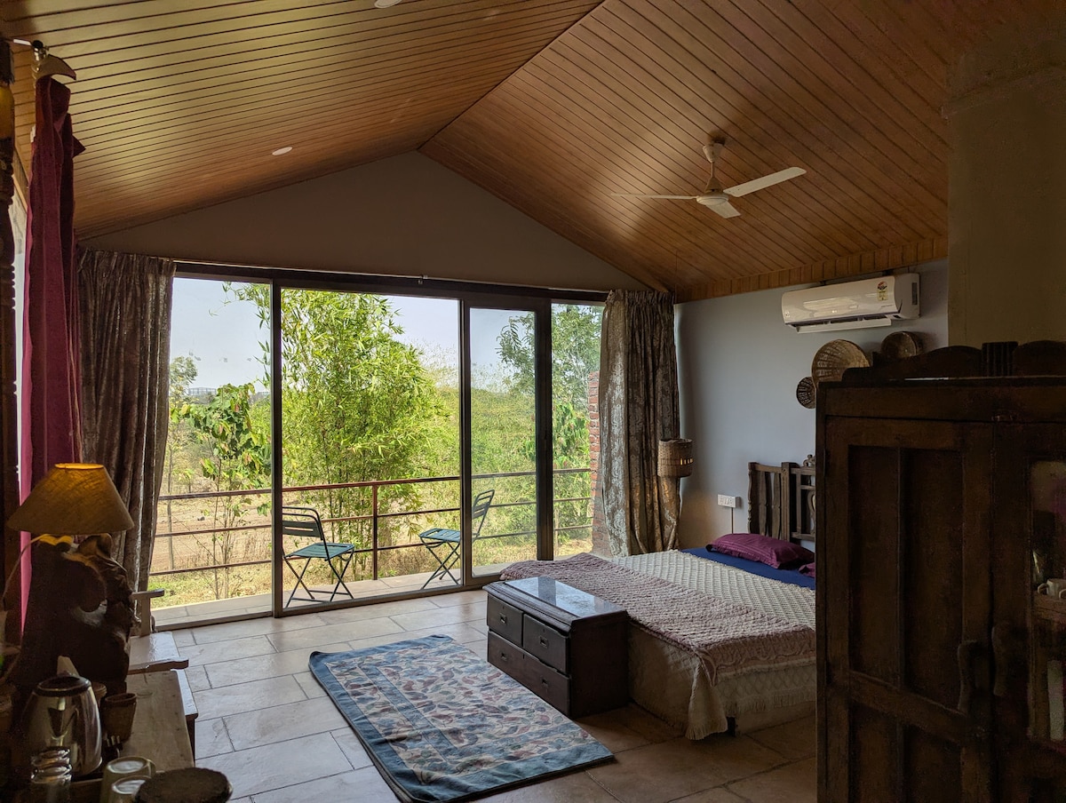 가든 코티지는 농장의 나무와 잔디로 둘러싸인 고요하고 녹지로 둘러싸인 편안한 환경에 있습니다. 2가지 숙박 옵션이 있습니다. 첫 번째 코티지에는 더블 침대 1개, 싱글 침대 2개, 간이 주방, 식사 공간, 좌석 공간, 작업 공간이 있습니다. 두 번째 전원주택에는 더블 침대와 좌석 공간이 있는 스위트 2개가 있으며 각 스위트에는 추가 싱글 침대 2개가 있습니다. 성인 2명까지 1박당 4000루피(조식 포함)이며, 추가 인원에 대해서는 1인당 1박에 1500루피(조식 포함)입니다.