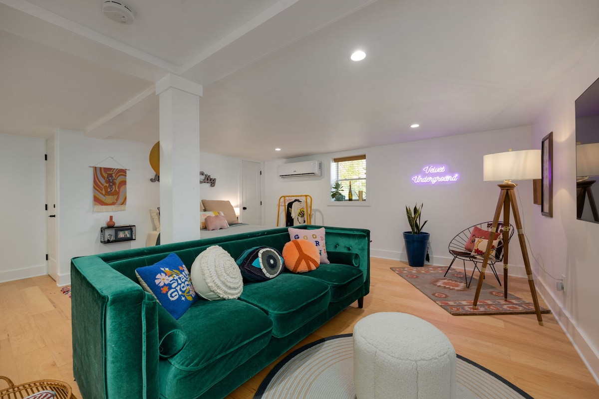 Spend time in the city and then retreat back to The Velvet Underground. This basement apartment is an eclectic studio complete with it's own entrance, a full kitchen, luxury shower with double shower heads, a queen bed, and a private patio space. This space is centrally located to BNA Airport, Opryland, and Downtown Nashville. Opryland - 7 Miles BNA Airport - 3 Miles Downtown Nashville - 10 Miles