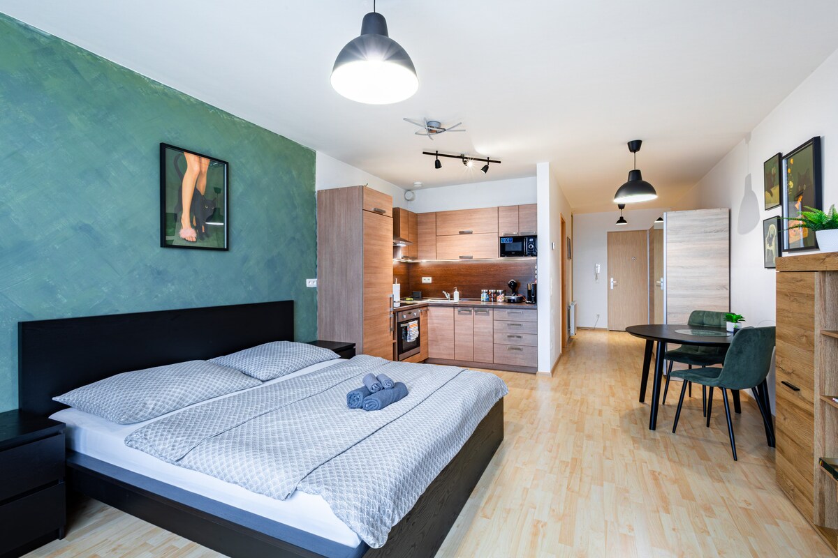 Útulný, pokojný a moderný apartmán sa nachádza v bratislavskej lokalite Ružinov, v širšom centre mesta. Ubytovanie je komplexne vybavené, hostia môžu využívať bezplatné Wi-Fi. Hneď za budovou je platený parkovací dom. Apartmán má 1 spálňu, vybavenú kuchyňu s chladničkou a mrazničkou, práčku a kúpeľňu so sprchou. V blízkosti apartmánu sa nachádzajú nákupné centrá Central a Nivy s hlavnou autobusovou stanicou, trhovisko Miletička, jazero Štrkovec, kúpalisko Delfín a Zimný štadión Ondreja Nepelu.