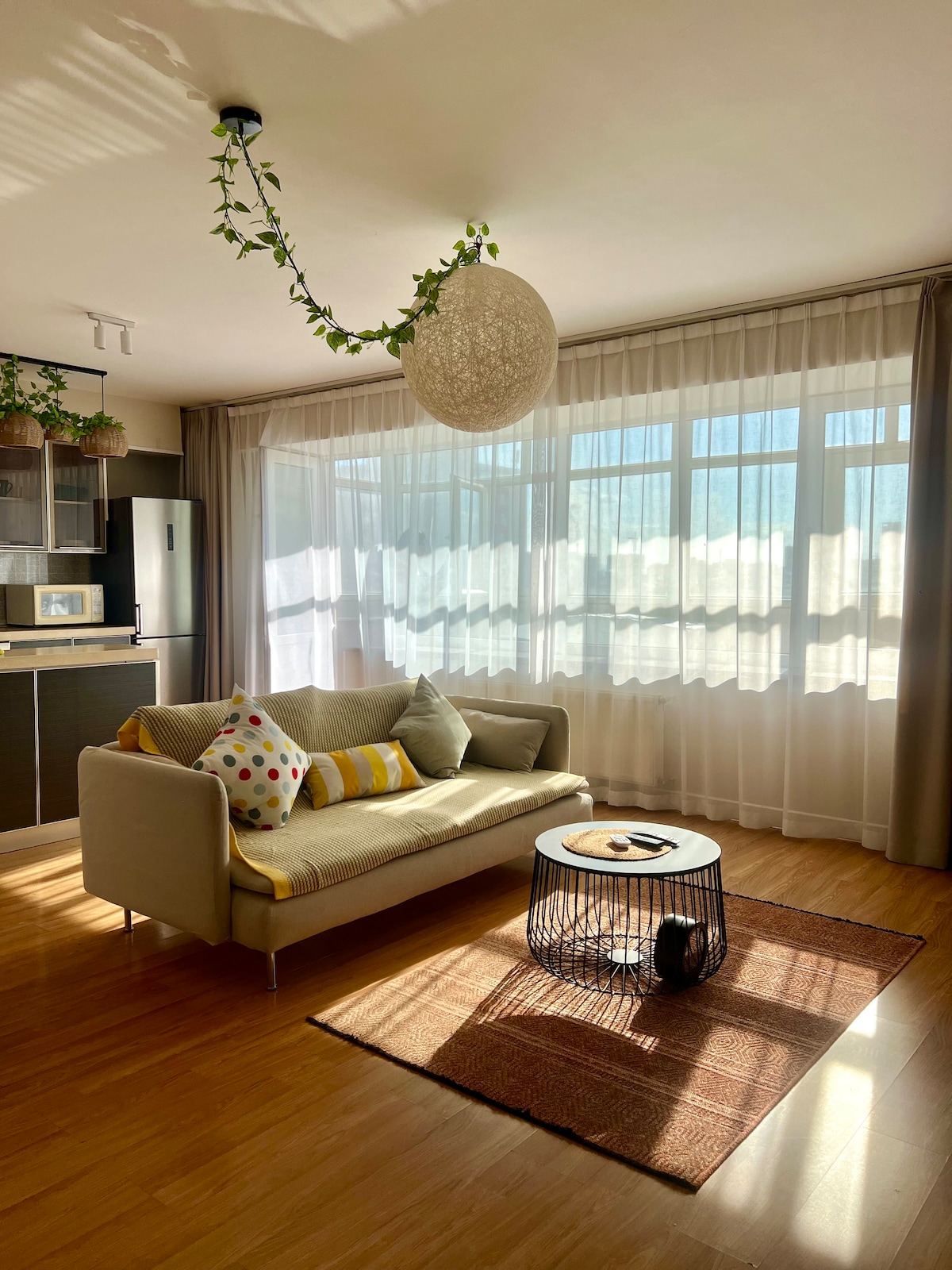 세련된 65m ² 1베드룸 아파트로 시내 중심가 근처에 완벽하게 자리잡고 있습니다! 도보 10분 거리에 레스토랑, 쇼핑센터, 은행, 버스정류장 모두 있습니다. 건물에는 24시간 보안, 주차장, 어린이 놀이터가 있습니다. 또한, 장기 숙박의 경우 매주 무료 청소 서비스를 제공합니다. 아파트 특징: - 침실: 1 (퀸사이즈 침대) - 수용 인원: 최대 4명 (풀아웃 침대 있음) - 도시와 산 전망을 감상할 수 있는 전용 테라스 - 초고속 와이파이 - 24시간 감시