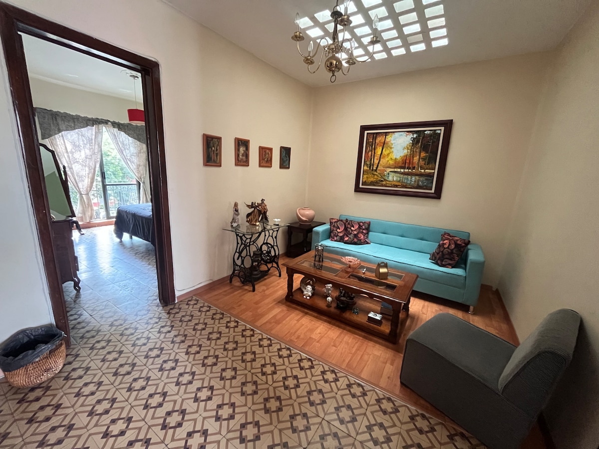 쾌적한 숙박을 위해 필요한 요소를 갖춘 편안한 아파트 전체. 위치가 매우 좋으며 도시의 여러 주요 지점 (예: 소칼로 또는 벨라스 아르테스, 지하철로 25분, 데포르테스 궁전, 지하철 또는 메트로버스 25분) 과 연결되어 있습니다. 이 동네는 매우 조용하고 도보로 이동할 수 있습니다. 동네를 산책하며 카페, 아이스크림 가게, 퐁다, 시장 (3블록 거리), 세탁소 등 다양한 서비스를 즐길 수 있습니다. 마음에 드실 거예요