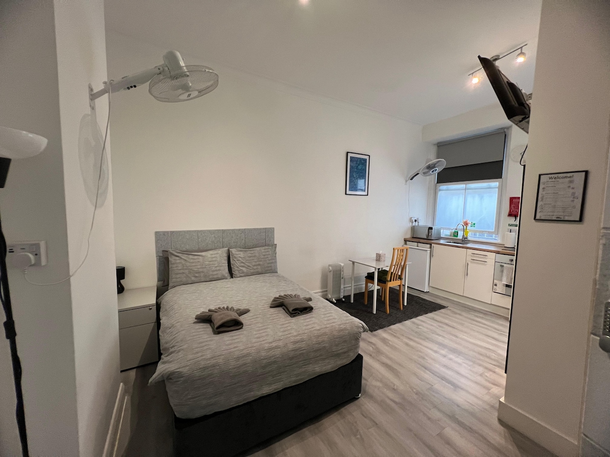 이 스튜디오 플랫은 켄싱턴 & 첼시의 중심부에 위치해 있습니다. 디스트릭트, 서클 및 피카딜리 라인을 운행하는 두 개의 지하철역에서 가깝고, 출장을 위해 도시로 여행하기에 좋은 위치에 있습니다. 런던 외곽에 거주하지만 이곳에서 일하거나 공부하는 사람에게 이상적인 장기 숙소입니다. 간이 주방과 다용도실이 있으며, 세탁기/건조기가 있습니다. 장기 숙박에 적합합니다! 일할 수 있는 책상 테이블도 마련되어 있습니다. 장기 숙박에 할인이 제공될 수 있습니다. 자세한 사항은 호스트에게 문의하세요.