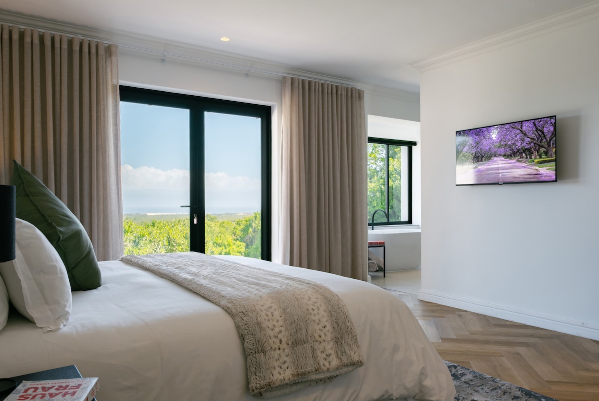 Welcome to FernHill! A secluded, romantic retreat nestled in tranquil coastal forest—just 5 minutes from Sardinia Bay Beach and the city. Perfect for couples or weary souls seeking peace, it offers a fireplace, hot tub, sauna, firepit, and visits from local birdlife. Quiet luxury meets nature—only 15 minutes from the airport and 50 minutes from Addo. It feels like the middle of nowhere, yet everything you need is right nearby.