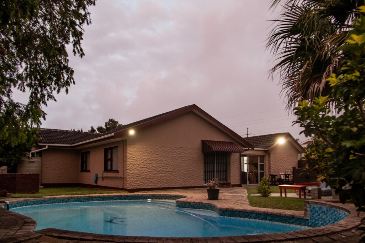가족 여행에 완벽한 가족 친화적인 숙소입니다. 중심부에 위치하고 넓으며, 편안함을 느낄 수 있는 편안함을 느낄 수 있습니다. 바켄스 계곡이 내려다보이는 훌륭한 해수 수영장, 장작 화덕 온수 욕조, 데크. 태양광 발전 - LOADSHEDDING 불가! 아름다운 델리/정육점까지 도보 거리 내에 있으며 식료품점 등까지 차로 5분 거리입니다. 차로 15분 거리에 아름다운 블루 플래그 해변이 있습니다.