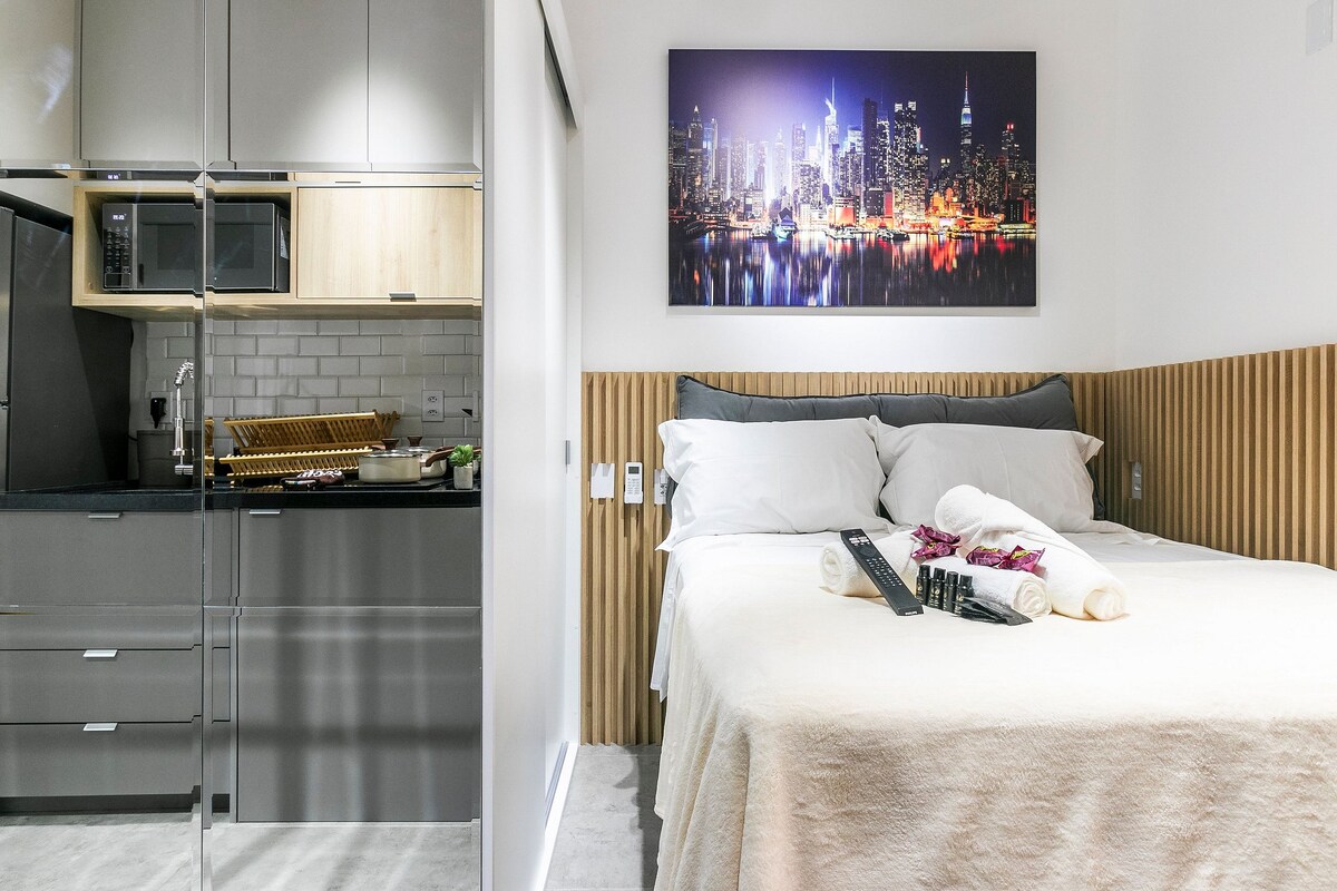 오스카 프레이레 거리의 고급 스튜디오 고급 상점들로 유명한 상파울루의 가장 유명한 거리에 위치한 현대적이고 세련되고 완벽한 스튜디오. 24층에 위치한 스튜디오, 파울리스타 거리의 멋진 전망을 볼 수 있습니다. 55인치 TV, 와이파이 인터넷 Vivo Fibra 200, 케이블 TV, 조용한 에어컨, 커피 메이커, 쿡탑 및 미니바, 자동 암막 커튼, 휴대용 옷 스팀 기기, 주방 기구, 헤어 드라이어, 부드러운 시트 및 수건, 비누 및 샴푸/컨디셔너 키트가 갖춰진 숙소입니다.