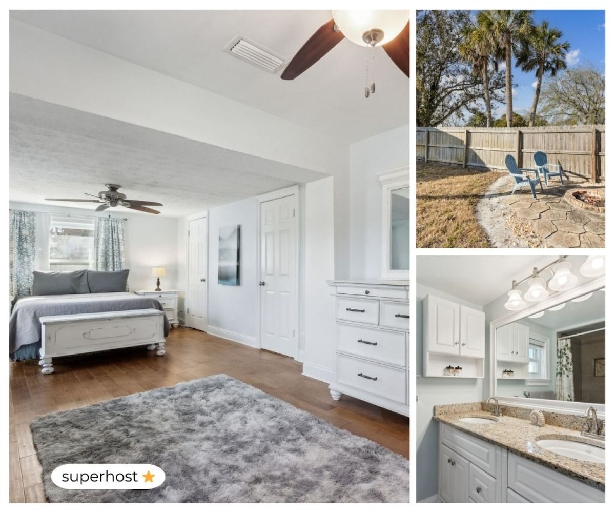 Stay at Seven Palms Retreat on 2nd Avenue in Jacksonville Beach for a quiet getaway. This 2-bedroom, 1-bath home is just 7 blocks from the beach, a quick 5-minute bike ride to the sand. Local shopping, Parks, bowling and restaurants are within walking distance. Sleeps 6 guests with a queen bed, 2 twin beds, and a pull-out full-size sofa bed. Relax by the fire pit on the back paver patio and grill outdoors. Our completely renovated home ensures a clean and welcoming environment for your trip.