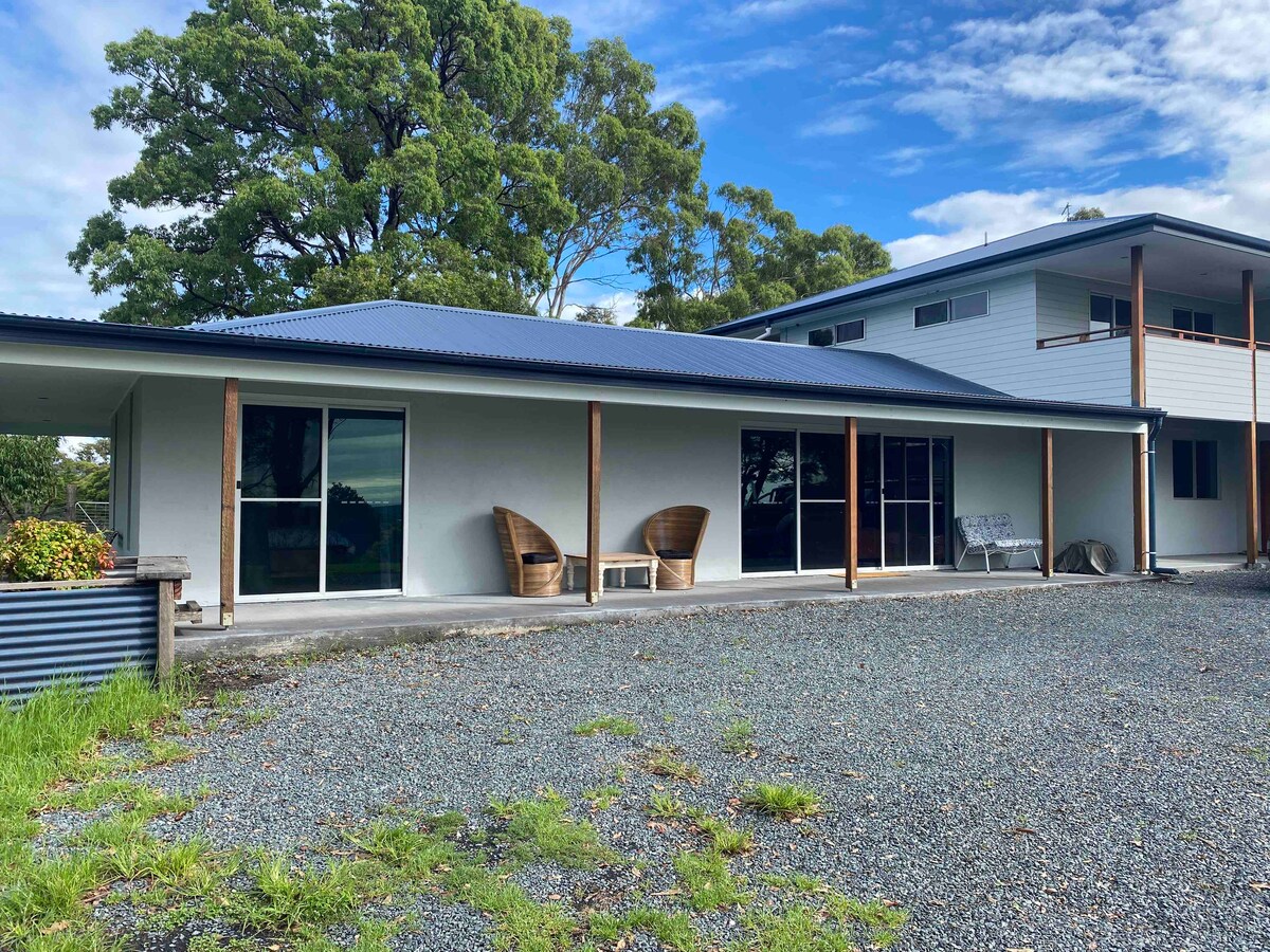 릴리 폰드 캐빈은 저희 농장에 있는 맞춤형 캐빈 중 하나입니다. 예술적이고 편안하며, 제가 직접 만든 도자기를 포함하여 예술과 개인적인 손길이 가득합니다. 무제한 NBN이 있어 자연의 평화 속에서 연결 상태를 유지할 수 있습니다. 바로 옆에는 바비큐, 수제 식탁, 신성한 뭄불라 산의 멋진 전망을 즐길 수 있는 공용 햇살이 내리쬐는 주방이 있습니다. 개구리들이 서식하는 백합 연못으로 흐르는 물소리가 들리며, 별이 빛나는 밤에 조용히 산책을 즐길 수 있습니다.