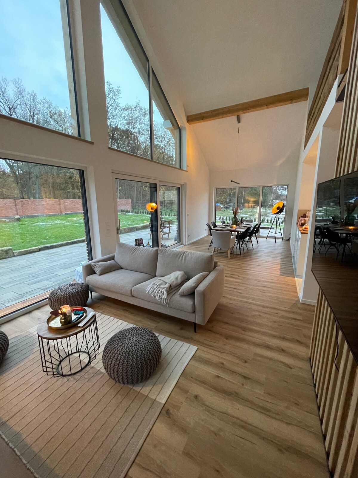 Genieße die Klänge der Natur wenn du in dieser besonderen Unterkunft in der mecklenburgischen Seenplatte übernachtest. Innen wurden nur feinste Materialien und Putze verwendet. Nichts ist überladen oder verbastelt - hier kannst du durchatmen, die Natur genießen, im See baden (5 min zu Fuss), direkt vor dem Häuschen einen Hike beginnen oder mit dem Rad vom Grundstück aus starten und um den See radeln ... am Abend schlummerst du vorm Gußeisernen Kamin friedlich in eine Wolldecke gekuschelt ein ...