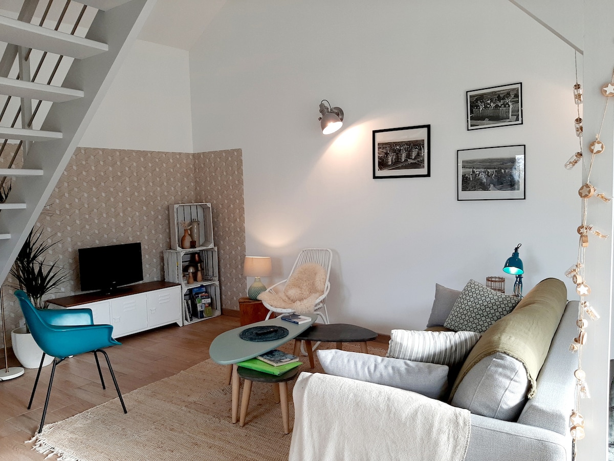 샤토 드 라 루아르를 방문하고, 솔로뉴나 루아르 강을 따라 산책을 즐기고, 보발 동물원에서 하루를 보내고, 주변 휴식 공간을 즐기고, 오래된 마을 헛간에 살며, 최근에 아름답게 리노베이션한 이 아늑한 보금자리는 깔끔한 인테리어 디자인을 갖추고 있으며, 정반대 지점에 위치한 작은 안뜰을 갖추고 있습니다. 루아르와 샴보드에서 몇 분 거리에 위치한 이 아늑한 보금자리입니다.