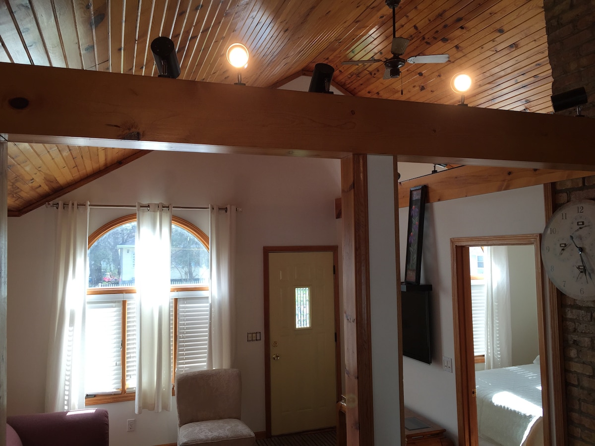화덕이 있는 미시간 호수 근처의 아늑한 샬레