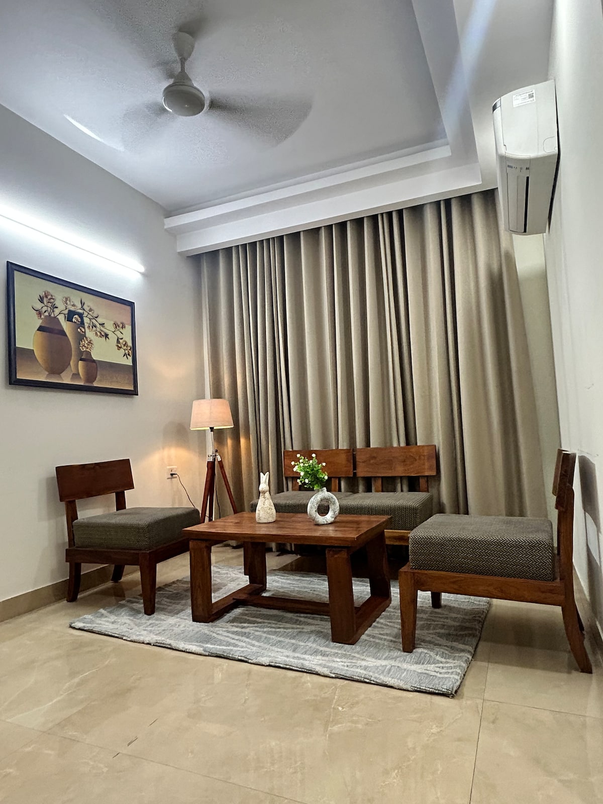 거실과 침실에 에어컨이 구비된 구르가온 섹터 43의 프리미엄 1BHK 서비스 아파트, 인덕션, 전자레인지, 식기류가 구비된 간이 주방. 골드 수크 몰 및 샬롬 힐스 학교까지 도보로 갈 수 있는 고급 지역에 위치하고 있으며, 밀레니엄 시티 센터 지하철에서 2.2km, 포티스 병원에서 2.1km 거리에 있습니다. 외국인 게스트 환영합니다. 얼리 체크인은 이용 가능 여부에 따라 달라질 수 있으며, 500루피가 부과되며, 레이트 체크아웃도 이후 3시간마다 500루피가 추가됩니다.