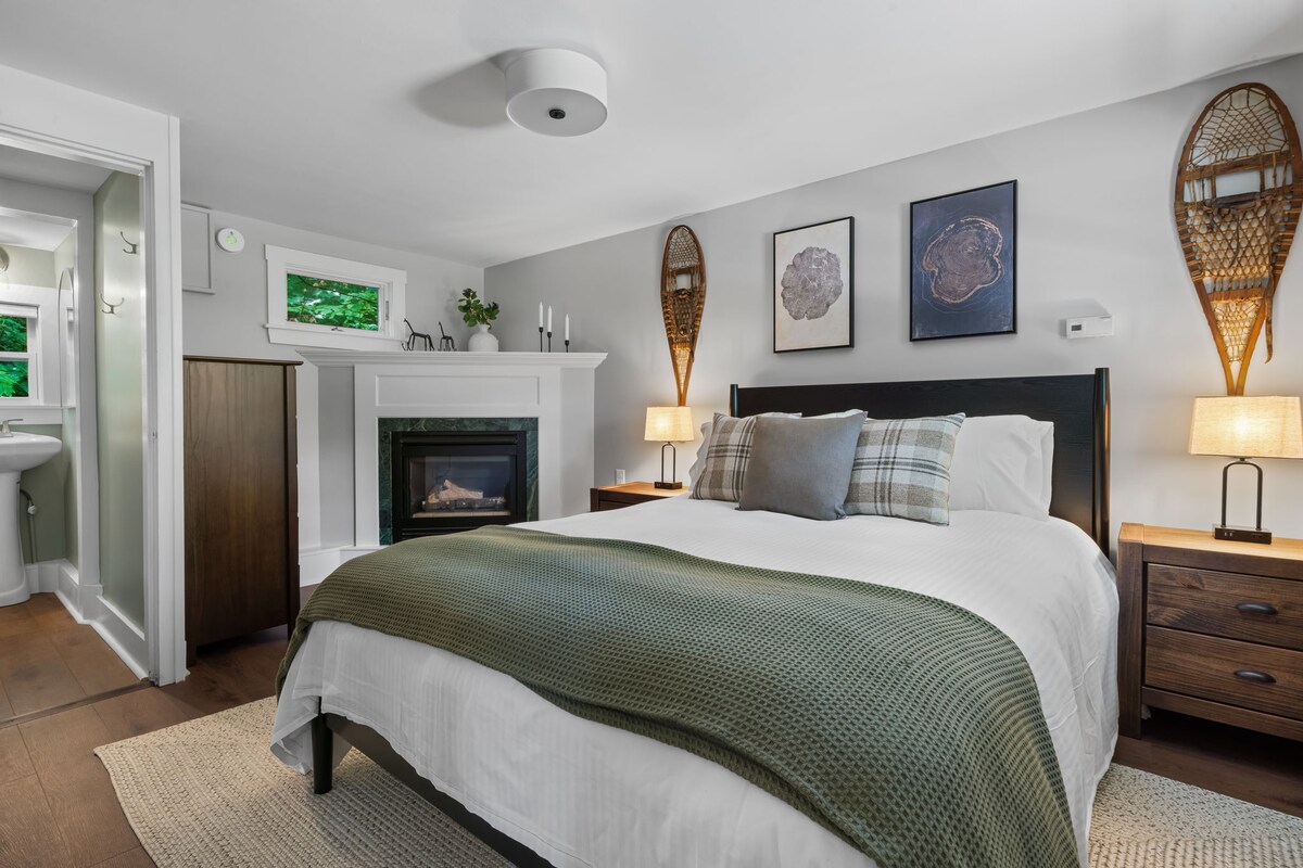 스노빌리지 인의 아늑한 캐리지 하우스 객실에서 휴식을 취해보세요. 푹신한 퀸사이즈 침대, 편안한 좌석, 전용 욕실, 와이파이가 갖춰져 있습니다. 따뜻한 1층 공용 공간에서 휴식을 취하거나, 불과 몇 분 거리에 있는 킹 파인 스키장에서 하루를 보내세요. 조용한 겨울 휴가를 보내기에 안성맞춤인 평화로운 산속 휴양지입니다.