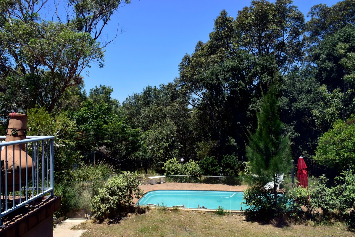 다음과 같은 쾌적하고 프라이빗한 독립형 아파트: ✔️ 중앙 역방향 사이클 에어컨 고급 매트리스와 침구를 갖춘✔️ 퀸 베드룸과 수영장과 수풀이 내려다보이는 좌석 공간. ✔️냄비, 프라이팬, 식기류 및 필수품 제공 주방 아일랜드나 식탁에 앉으세요✔️. 욕실의 ✔️온열 수건걸이 ✔️세탁 싱크대, 세탁기, 건조기 ✔️거실에는 2인용 라운지와 가끔 의자가 있습니다. ✔️천장 선풍기 및 차단 커튼 그네 좌석이 있는✔️ 전용 파티오