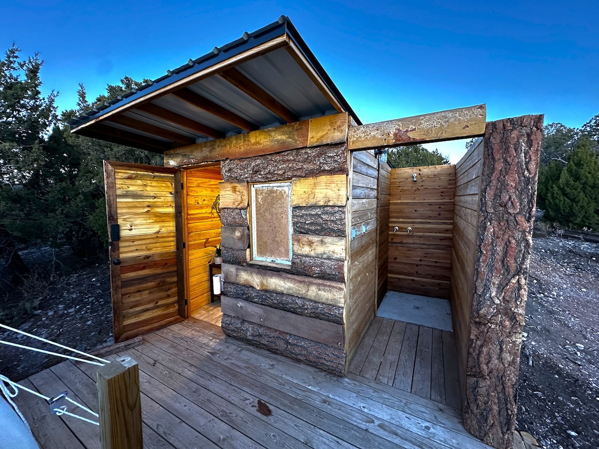 글램핑장은 수영장과 온수 욕조가 있는 1에이커와 2/3에이커의 비밀 지역에 있습니다. 숙소에는 두 개의 객실과 에드 해다웨이의 조각품으로 장식된 숙소에 카시타와 캠핑카가 있습니다. 편안하게 쉴 수 있는 캠프파이어와 해먹이 있습니다. 사랑스러운 야외 온수 샤워기가 있습니다. 또는 글램핑장에서 단 몇 걸음 거리에 있는 메인 숙소의 샤워실을 이용하실 수 있습니다. 사람들은 현관에서도 노는 것을 좋아합니다. 텐트에는 노트북과 전화를 연결할 수 있는 전기가 있습니다.