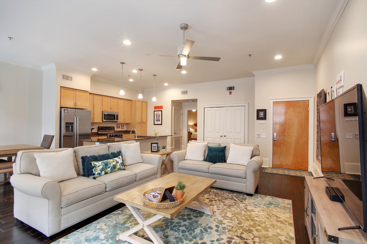 이 에어비앤비는 뉴올리언스 시내에 위치한 아름다운 침실 2개, 욕실 2개짜리 아파트입니다. 유명한 프렌치 쿼터와 가깝고 가족 또는 친구와 함께 휴식을 취할 수 있는 넉넉한 공간을 갖추고 있습니다. 거실 공간에는 편안한 좌석과 대형 평면 TV가 있습니다. 침실에는 푹신한 침대와 넉넉한 옷장 공간이 마련되어 있으며, 욕실은 현대적이고 시설이 잘 갖춰져 있습니다. 도심 한가운데에 위치하고 있으며, 최고의 레스토랑, 바, 관광지에 쉽게 접근할 수 있습니다. 반려동물 동반 가능합니다!