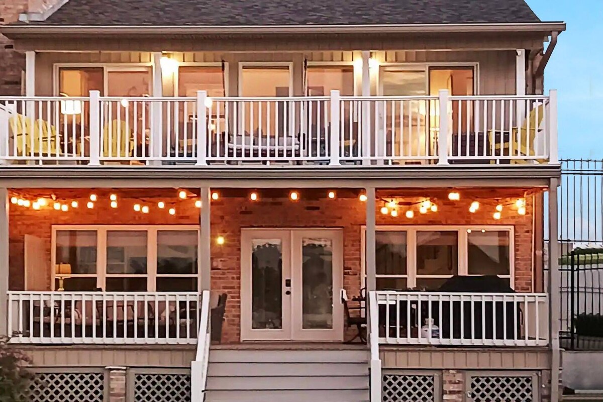 물가에 있는 독특하고 가족 친화적인 숙소에서 멋진 추억을 만드세요. 그랜드 올 미시시피 강의 11마일 구간이었던 폴스 리버의 타운하우스에서 환상적인 전망을 즐겨보세요. 1층과 2층에 있는 3개의 대형 침실, 욕실, 거실. 1층 또는 2층 발코니 또는 1층 데크의 뒷문 바로 바깥에 있는 멋진 부두에서 일몰이나 일출을 감상하세요. 이 멋진 리조트 호수 해안을 따라 폰툰 보트를 타보세요.