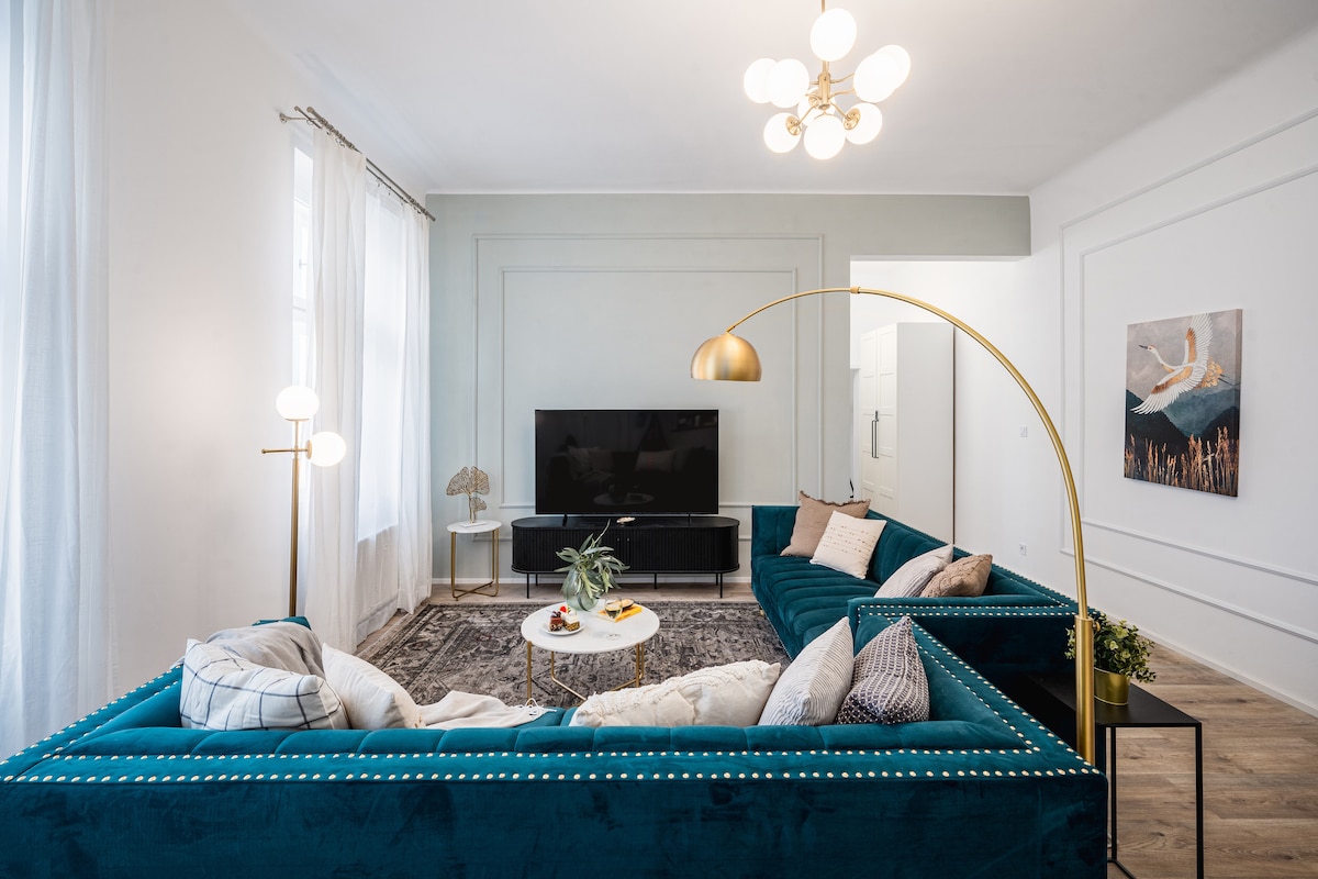 1890년대에 지어졌지만 최근에 리모델링한 아름다운 유젠트 스틸 숙소에 머물며 모든 객실에 내장된 에어컨을 포함하여 원하는 모든 현대적인 편의시설을 즐기세요. 화려한 스투코 몰딩으로 장식된 역사적인 높은 천장, 미드 센추리와 현대적인 가구, 대형 욕조와 별도의 화장실이 있는 아름답게 꾸며진 침실 2개의 아파트. 주말 여행, 출장 또는 장기 숙박을 위해 프라하에 머무는 동안 내 집처럼 편안한 이상적인 숙소입니다.