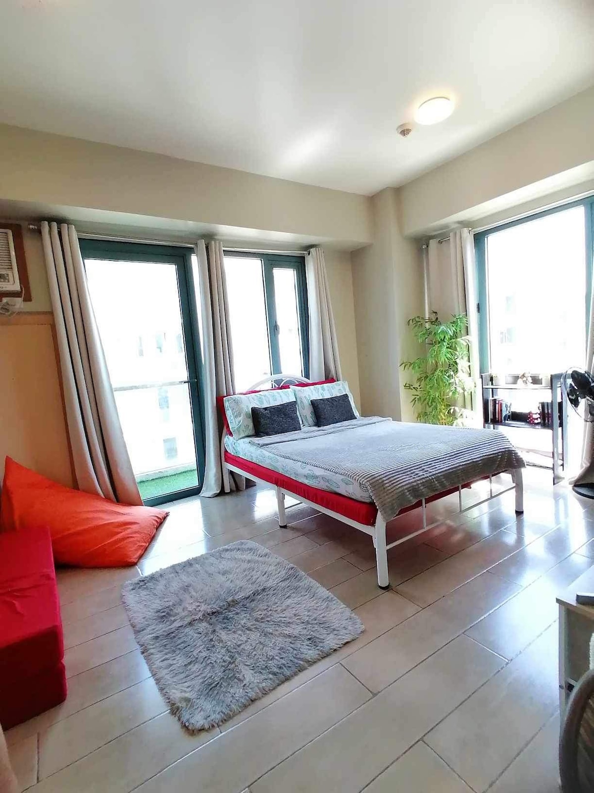 Welcome to our studio unit located right across the NAIA Terminal 3. It’s inside a gated condominium in the vicinity of Newport City which houses Newport World Resorts, Marriott Manila, Hilton, Sheraton, and Newport City Mall and many other establishments. It has direct access to NAIA Terminal 3 via the modern bridgeway known as Runway Manila. It's a comfortable 6-8 minutes walk. It’s also perfect for work since wifi is fast and reliable. The unit is 32 sqm with a balcony.