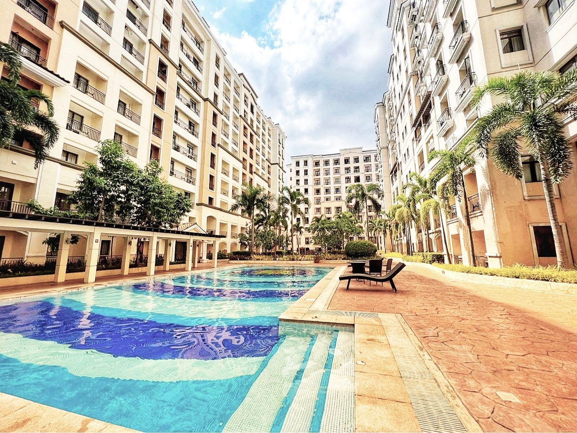 All-organic modern interiors + Crate & Barrel furnishings 78-SQM brand-new upper scale condo 180° wraparound balcony w/ Rockwell skyline views + outdoor set Queen bed w/ Tempur topper 1000 thread count linens & goose down pillows Ogawa massage chair De'Longhi coffee machine Fully stocked kitchen & coffee bar 50" Samsung TV (Netflix) + high-speed WiFi FREE welcome basket (toothbrush, slippers, shaver) Full toiletries provided 24/7 security Self check in anytime FREE access to gym, pool & parking