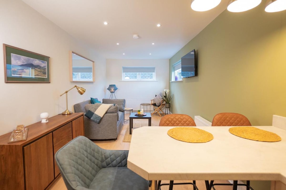 Step into Squareview, a vibrant, modern first-floor apartment in the heart of Hilltown – your gateway to the Mourne Mountains. Wake to fresh mountain air, stroll to local pubs and cafés, or drive just 50 minutes to Belfast and 1 hr 30 to Dublin. Inside, unwind with two bedrooms, a sleek kitchen, and open-plan living that can accommodate up to four guests. Whether you’re here for hiking, golf, cycling, or a peaceful escape, Squareview blends comfort, luxury and location for a memorable stay.