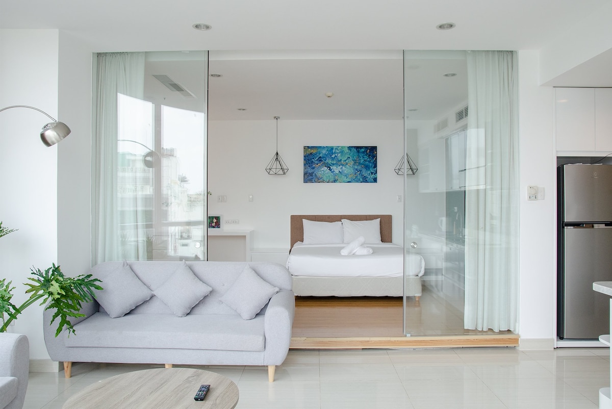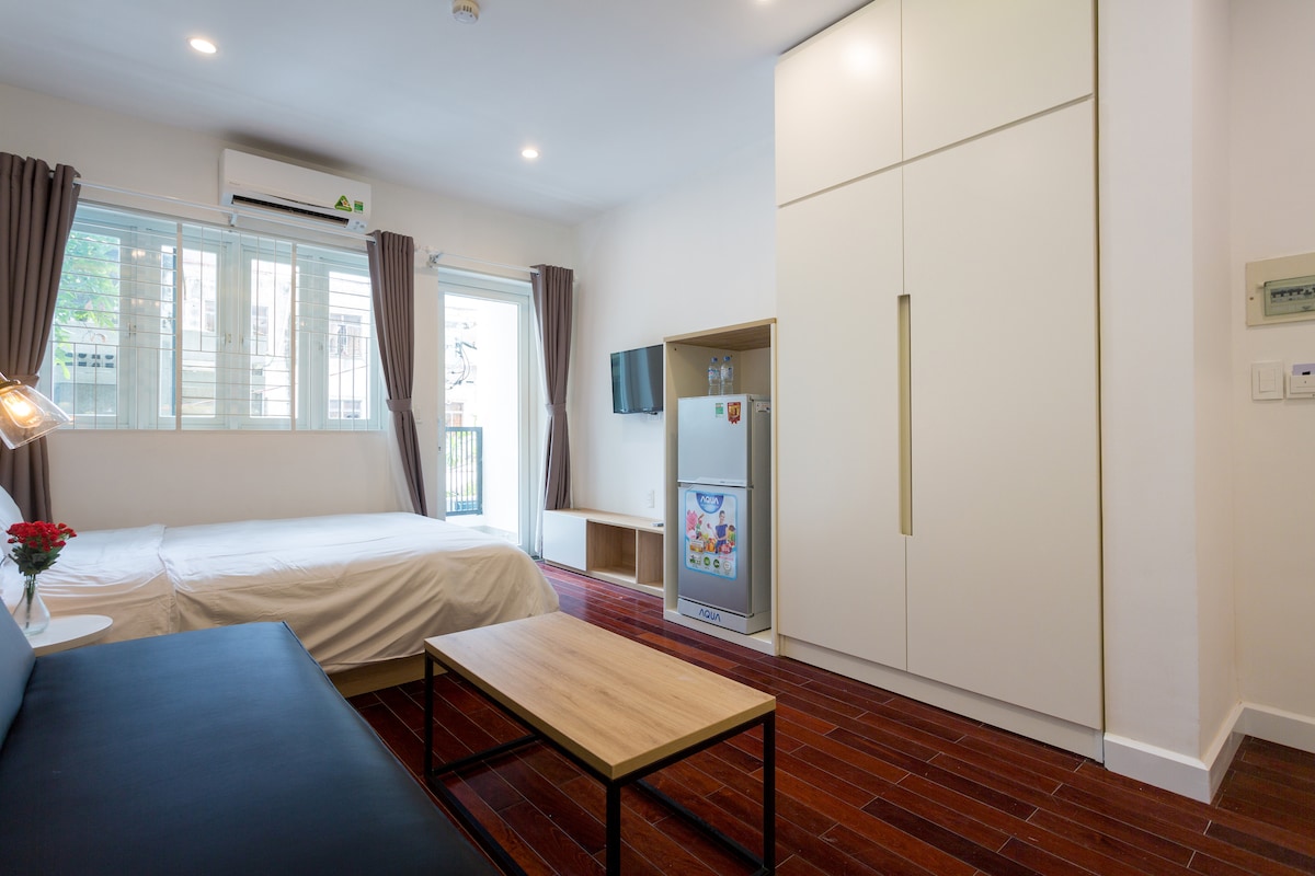 A beautifully designed studio apartment with everything you need, centrally located but hidden away just enough for a peaceful night of sleep away from the heavy city noise. Great for travelers who want to explore Saigon and looking for quality comfort and a more local experience. - Beautiful swimming pool - Free fast wifi, Cable TV - Free amenities for your living: washer, dryer, AC, fridge, hot water - Kitchen with enough tools for your cooking. Note: Not provide/support VAT invoices