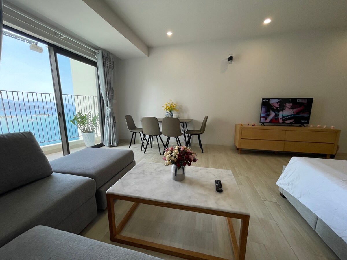이 아파트는 고급스럽고 럭셔리한 가구로 꾸며져 있으며, 긴 소파와 식탁이 있습니다. 아파트에는 바다를 감상할 수 있는 발코니가 있으며 흡연이 가능합니다. 아파트에는 초대형 냉장고, 전자레인지, 기본 주방용품, 세탁기, 스마트 TV가 있습니다. 아파트 아래에는 12층에 레스토랑과 카페가 있는 상업 센터가 있으며, 3층과 4층에는 롯데슈퍼마켓이, 5층에는 뷔페가, 7층에는 어린이 놀이터가, 10층에는 백신 접종소(VNVC)가 있습니다. 12a층에 인피니티 풀이 있으며, 수건 1장, 물 1잔, 4시간 동안 약 350.000/테의 비용으로 이용하실 수 있습니다.