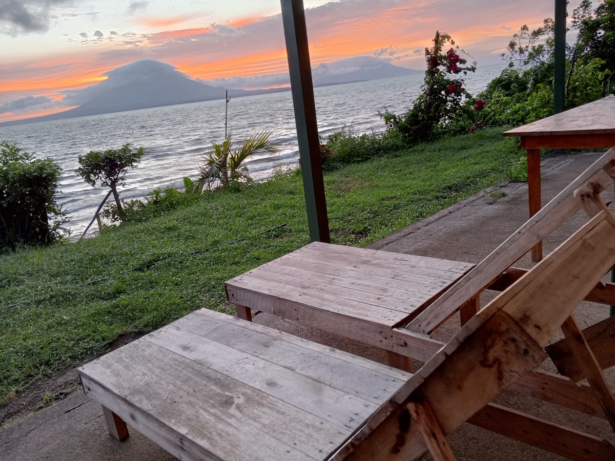 오메테페의 고요한 해변 일출과 마법 같은 고요한 석양! 와이파이가 있는 전용 방갈로, 따뜻한 물 샤워기가 있는 깨끗한 침실과 욕실! 해먹, 테이블, 좌석이 있는 파티오 - 정원 - 해변 앞 숙소 = 포장된 메인 로드에 있는 2개의 화산 사이에 있는 가장 긴 모래 해변. 아름다운 조각 나무/유리 문과 창문 - 모두 금속 바 보호 장치와 천장형 선풍기가 있습니다. 천연 목재 천장과 가구, 더블 침대 1개, 싱글 침대 1개. 세라믹 타일. 주차/매일 하우스키핑! 식사/세탁 추가. 투어