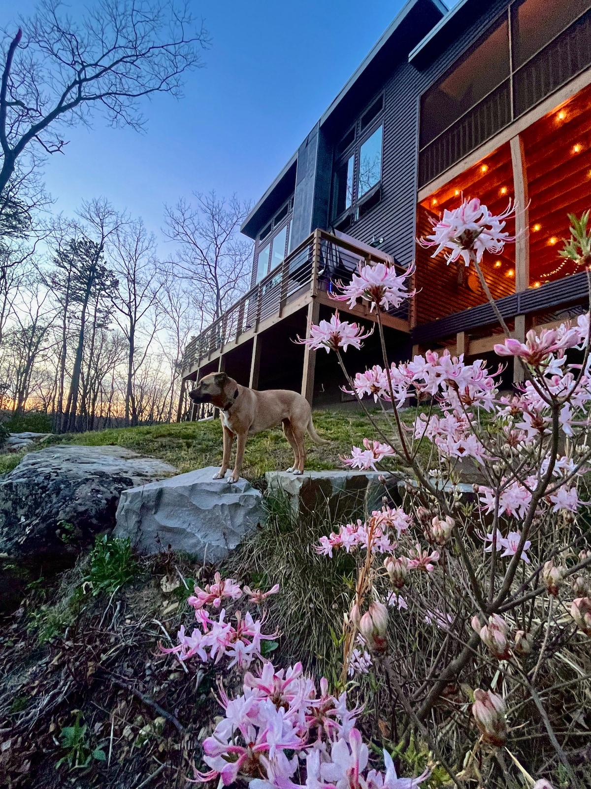 A modern dog-welcoming cabin on 10½ private and peaceful acres near Chattanooga, where nature and outdoor living mingle with comfortable luxury. 🌳 Treetop and ridgeline views 👩🍳 Outdoor kitchen 🌠 Hot tub 🔥 Firepit 🚿 Outdoor Shower 🛋 Screened porch 🌲 Creek Trail 40 min to Chattanooga, 2 hrs to Nashville, Knoxville, and Atlanta, 10 min to epic hiking, & walkable to hang gliding. Check out addtl. info, photos & videos on the website, whynotwoodlandescape (.) c o m
