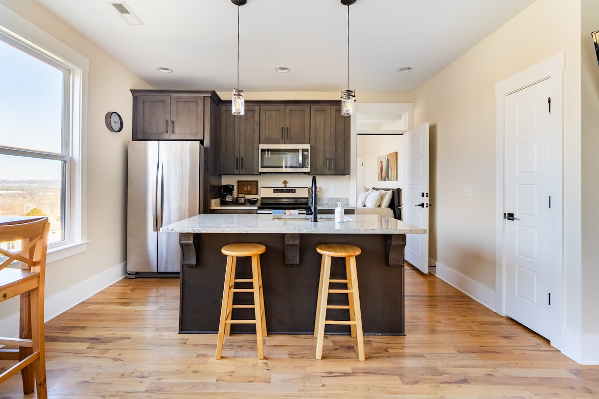 세련된 단단한 목재와 타일 바닥이 특징인 활기찬 2BR/2BA 2층 게스트하우스에서 채터누가를 경험해 보세요! 루비 폭포, 록 시티 가든, 인클라인 레일웨이, 리버워크, 월넛 스트리트 워킹 브리지에서 몇 분 거리에 있으며, 최고의 하이킹, 산악 자전거, 암벽 등반 코스도 가깝습니다. 또한, 1885 Grill과 Little Coyote를 비롯한 도보 거리에 있는 레스토랑을 즐기실 수 있습니다. 두 대의 차량을 주차할 수 있고 밝고 현대적인 분위기를 자랑하는 이 숙소는 완벽한 모험의 거점이 되어 드립니다!