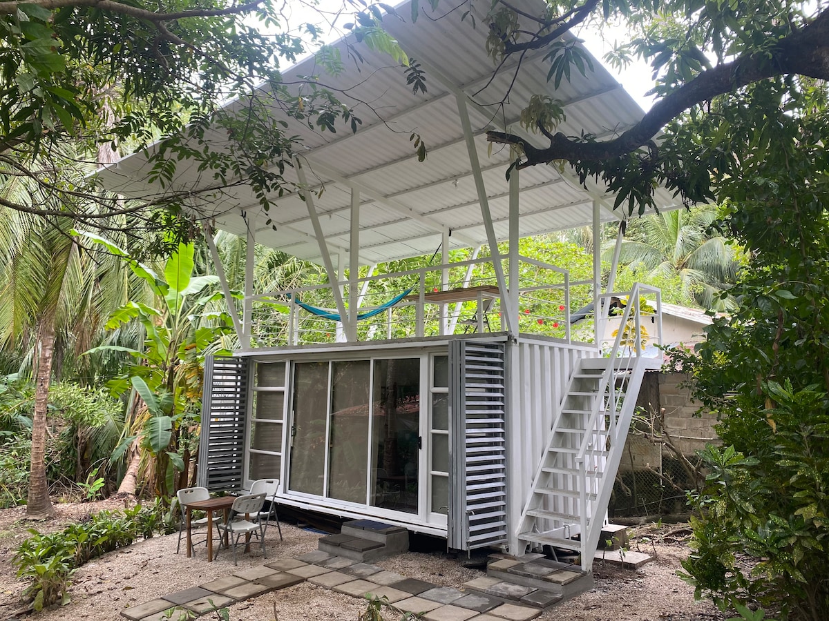 Small container equipped with everything you need to spend a pleasant stay. It has an outdoor terrace surrounded by a natural environment. Due to our privileged location you can walk to the best surf spots and enjoy beautiful sunsets. In addition, it is very close to a good variety of local restaurants, small supermarkets and surf board rental. On the property there are two more accommodations, Apartamento Avellanas and Casa Avellanas.
