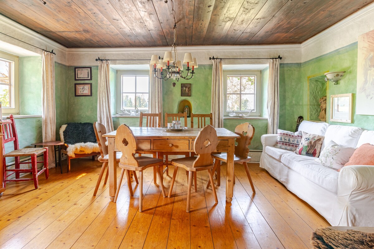 저희의 밝고 한적하며 아름다운 아파트는 저희 집의 1층에 위치해 있으며 테라스와 정원으로 바로 연결됩니다. 새로운 아파트는 시골 스타일의 현대적인 인테리어로 매우 잘 꾸며져 있습니다. 프라스도르프는 키므가우 산맥 아래에 위치하고 있으며, 알프스 앞지대의 완만한 언덕에 둘러싸여 있습니다. 키엠호와 심스호에서 불과 8km 거리에 있습니다. 뮌헨과 잘츠부르크 사이의 중심지에 위치하고 있으며 일 년 내내 북적거리는 분위기와 스트레스에서 멀리 떨어져 있습니다.