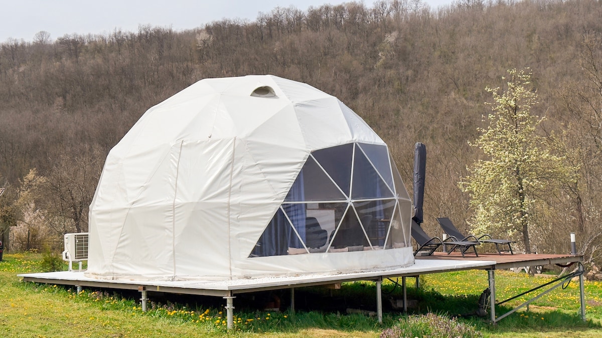 Secluded geo dome in the Balkan Mountains, near Elena. A peaceful glamping stay in a small mountain hamlet - not a typical guesthouse, but a stay close to nature. Includes AC (heating & cooling), private bathroom and kitchenette. No WiFi, limited signal. Access is via a short unpaved road, which can be muddy in wet weather. Ideal for guests seeking quiet, simplicity and an offline escape.