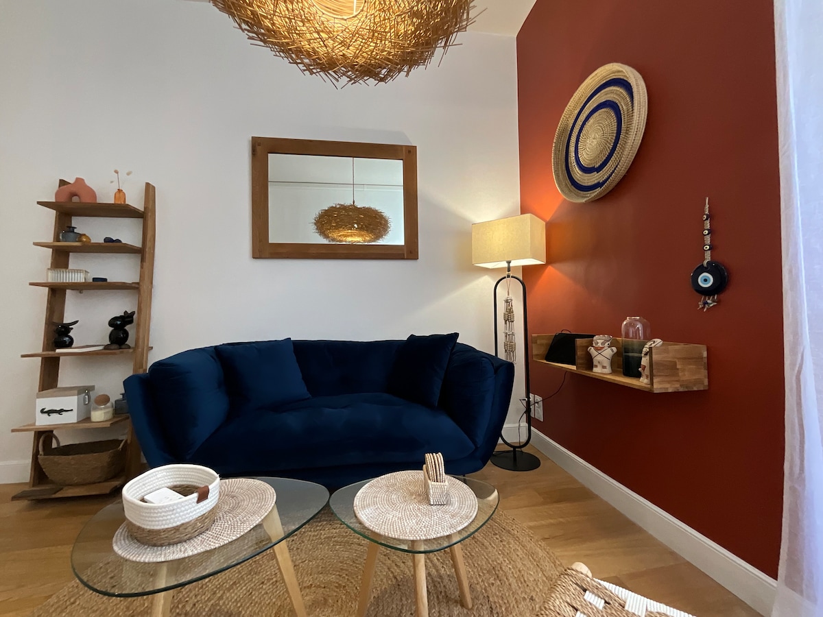 2022년에 완전히 리모델링한 숙소로, 에큐손에서 3분 거리에 있습니다(아레네, 메종 카레, 샘 정원에서 5분 거리). 주방 시설, 140cm 텔레비전, 인터넷, 21cm 두께의 고밀도 더블 침대(140/190), 세탁기, 3인용 소파 베드 및 소파, 네스프레소 커피 머신. 저희 집에 오신 것을 환영합니다! 지중해의 보석 니므은 과거와 현재가 공존하는 곳입니다. 아레네는 시간의 증인이며, 햇살이 내리쬐는 골목은 진정한 매력을 드러냅니다. 역사가 숨을 쉽니다...