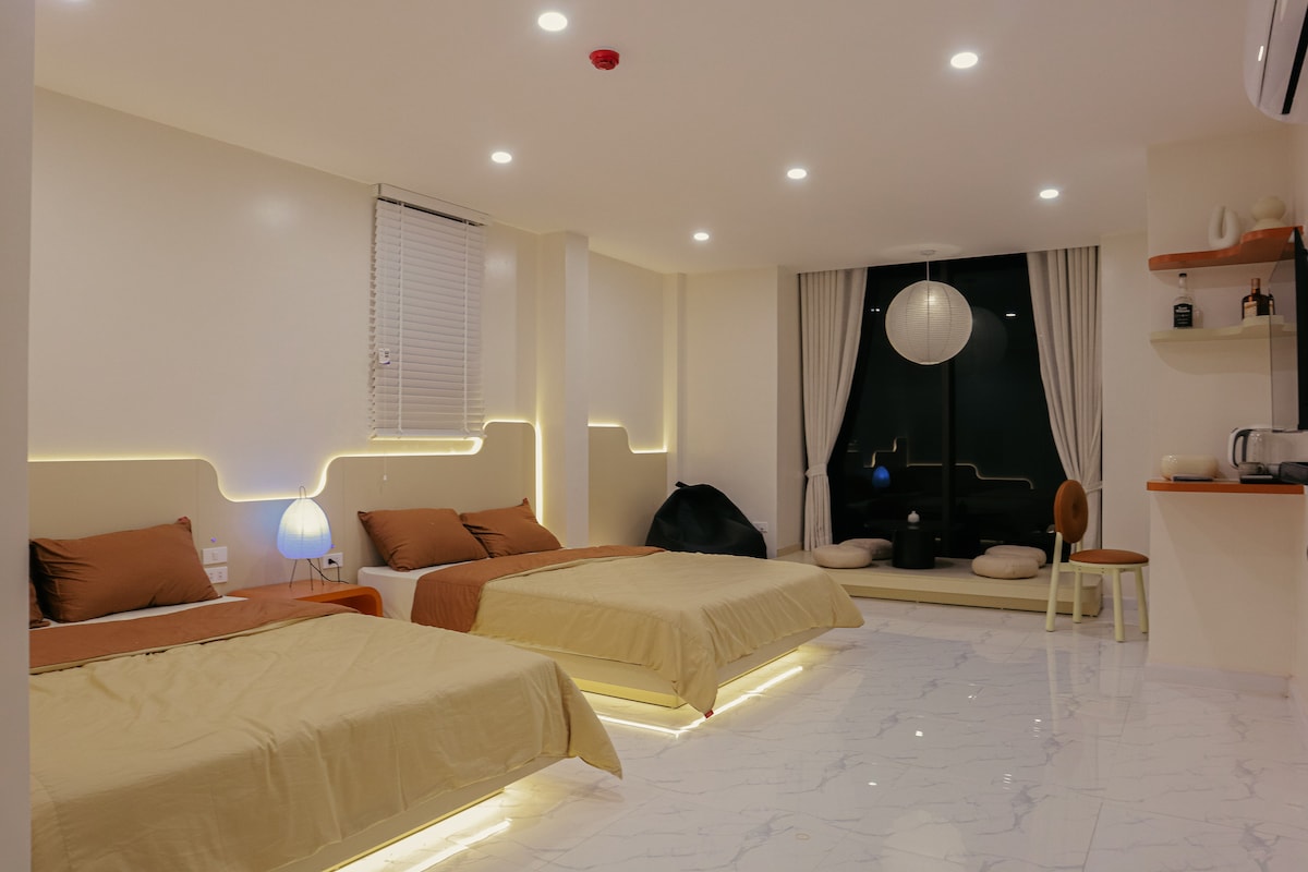 8개의 개인실을 운영하는 저희 가족의 홈스테이입니다. 에어컨, 온수 샤워, 편안한 침대, 아름다운 전망을 갖춘 객실입니다. 닌빈을 비관광적으로 둘러보기에 좋은 위치. 닌빈의 모든 유명한 명소인 땀꼭, 짱안, 호아루, 무아 동굴 등까지 자전거로 10~15분 이내에 갈 수 있으며, 아침 식사를 무료로 제공하고 자전거, 스쿠터를 대여합니다. 저희 홈스테이는 닌빈에서 현지인의 삶을 완벽하게 체험할 수 있는 곳입니다.