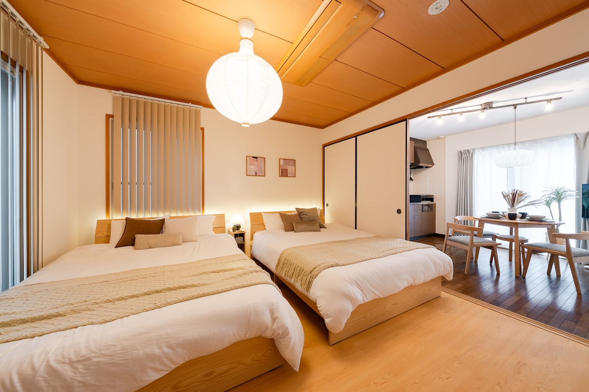 카나메 타운하우스는 현대적인 편안함을 모두 갖춘 전통적인 나가야 스타일의 타운하우스입니다. 전통 다이쿠 장인이 재건축한 이곳은 정통 일본 전통 소형 주택 내부에 현대적인 편안함을 모두 갖추고 있습니다. 이 숙소는 사쿠라 전망을 감상할 수 있는 거실을 갖추고 있으며, 2층에 걸쳐 최대 5명의 게스트를 수용할 수 있습니다. 주요 시설로는 킹사이즈 침대가 있는 로프트 베드룸, 풀사이즈 주방, 현대적인 욕실, 식기세척기, 세탁기+건조기, 초고속 와이파이 등이 있습니다.