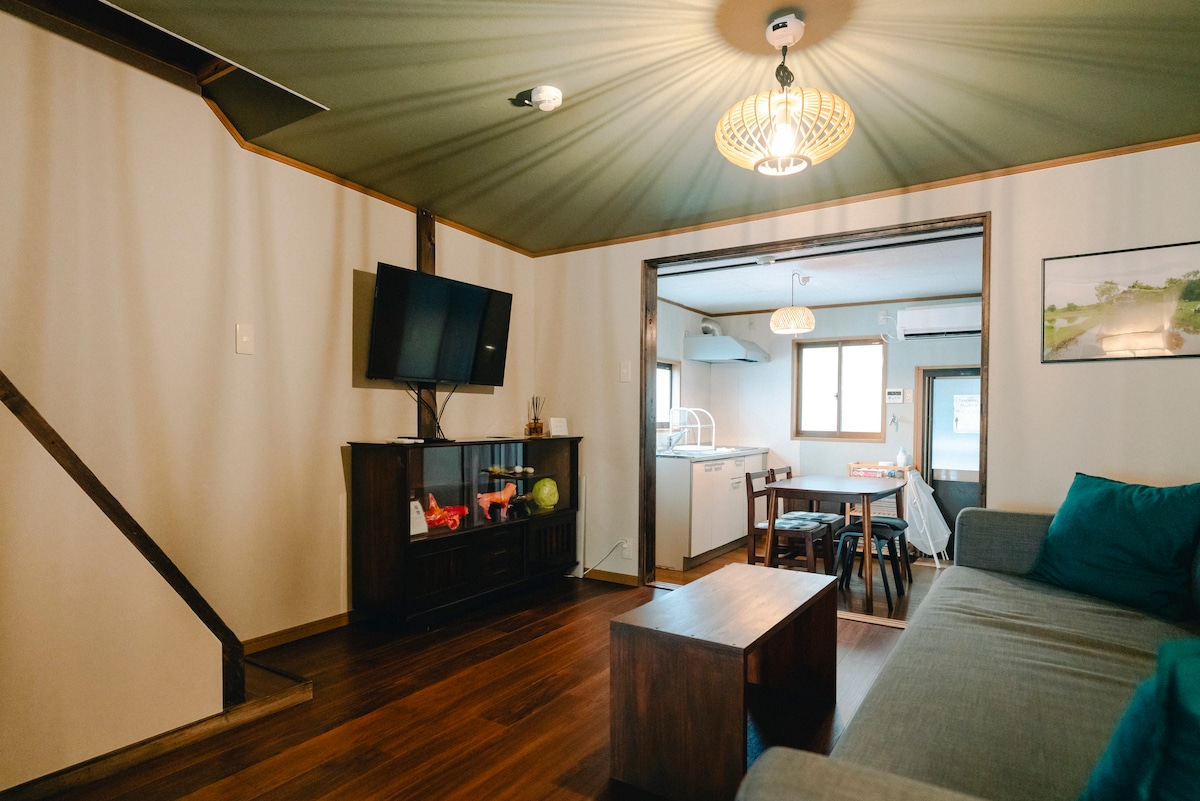 ์ผ๋ณธ์ ์ผ๋ฐ์ ์ธ 'ํ๋ฒํ' ์ถ์ ์ฒดํํ ์ ์๋ ์๋ฐ ์์ค์ ๋๋ค. ๋์์ ์์์์ ๋ฒ์ด๋ ๊ด๊ด์ง๊ฐ ์๋ ์ผ์ ์ํ์ ์ง์ ๋๋ ์ ์๋ ์ฅ์์ ๋๋ค. ์ผ๋ณธ์ ์ง์ง ์ํ์ ๋ง๋ณด๊ณ ์ถ์ ๋ถ, ๋๋ฆฌ๊ณ ํํ๋กญ๊ฒ ๋จธ๋ฌผ๊ณ ์ถ์ ๋ถ์ ์ํ ์์์ ๋๋ค. ์ ์์ฉ ์์์ ์กฐ๋ฆฌ ๋๊ตฌ๋ ์ค๋น๋์ด ์์ด ๊ฐ์กฑ ์ฌํ๊ฐ๋ ์์ฌํ๊ณ ์๋ฐํ์ค ์ ์์ต๋๋ค. โป ๊ฐ์ฅ ๊ฐ๊น์ด ์ญ์์ ๋๋ณด๋ก 15๋ถ ๊ฑฐ๋ฆฌ์ ์์ต๋๋ค. ์ฝ๊ฐ ๋จ์ด์ ธ ์์ผ๋ ๋ฏธ๋ฆฌ ์ํด ๋ถํ๋๋ฆฝ๋๋ค. โ๊ฐ์ค ํน์ง ใป 1์ธต์ ์๋น, ์ฃผ๋ฐฉ, ๊ฑฐ์ค ใ๏ผ์ธต์ ์นจ์ค ใป์ด๊ณ ์ ์์ดํ์ด ใป ๋๋ณด๋ก 1๋ถ ๊ฑฐ๋ฆฌ์ ์ ๋ฃ ์ฃผ์ฐจ์ฅ ์์ โ๋ชจ๋ฆฌ๋ ธ๋ฏธ์ผ์ญ์์ ๊ด๊ด์ง๊น์ง ์ ๊ทผ ใป ์ค์ฌ์นด์ญ (์ฐ๋ฉ๋ค) ๊ธฐ์ฐจ 12๋ถ ใป ๋จ๋ฐ์ญ ์ด์ฐจ 13๋ถ(ํ์น 1๋ฒ) ใป๋๋ก ๋ณด ์ ์ฒ 14๋ถ(ํ์น 1ํ) ใป๊ด์๊ตญ์ ๊ณตํญ ๊ธฐ์ฐจ 90๋ถ(ํ์น 1ํ) ยท USJ ๊ธฐ์ฐจ 24๋ถ (ํ์น ์์) ใป๋๋ผใใใใใใ๊ธฐ์ฐจ 50๋ถ(ํ์น 1ํ) ใป๊ตํ ๊ธฐ์ฐจ 60๋ถ(ํ์น 1ํ) โ์ฃผ๋ณ ์ ๋ณด ๊ฐ์ฅ ๊ฐ๊น์ด JR ๋ชจ๋ฆฌ๋ ธ๋ฏธ์ผ ์ญ ๋๋ณด 15๋ถ ์ค์ฌ์นด ์ฑ ๊ณต์ ๋๋ณด 17๋ถ ํธ์์ ๋๋ณด 5๋ถ ์ํผ (๋ฐค 0์๊น์ง ์์ ) ๋๋ณด 5๋ถ