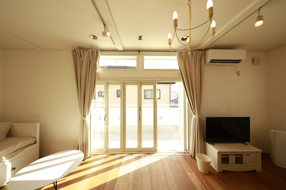 木の温もりと陽光の一軒家|横田基地近く|一棟貸切|最大6名|2トイレ・乾燥機|牛浜駅6分・無料P