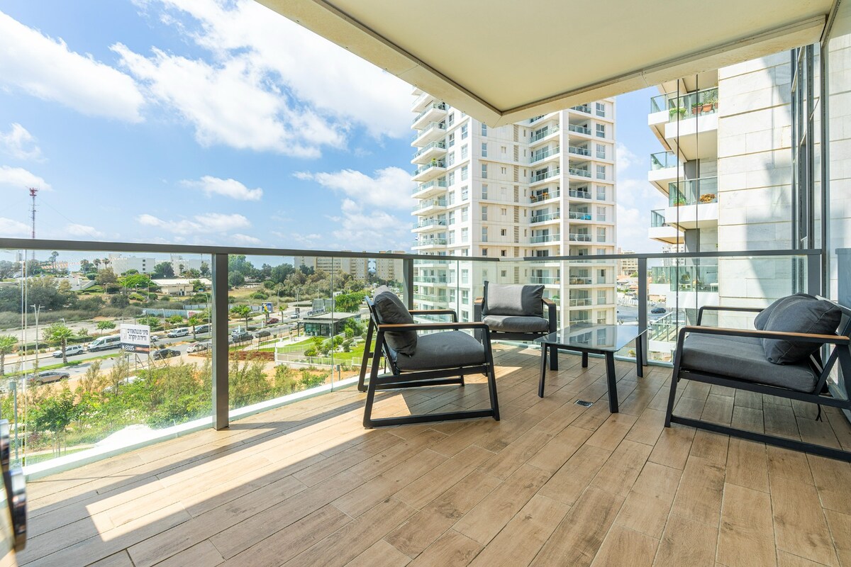 A beautiful beachfront apartment located in Givat Olga, in the centre of Israel. The building is brand new (1 year old) and has a 24/7 Concierge. It is located in front of the beautiful sandy beaches of Hadera (first line to the sea. just cross the street to get there). The apartment is on the 16 floor and has luxurious 20 Square meters balcony with the best view ever.