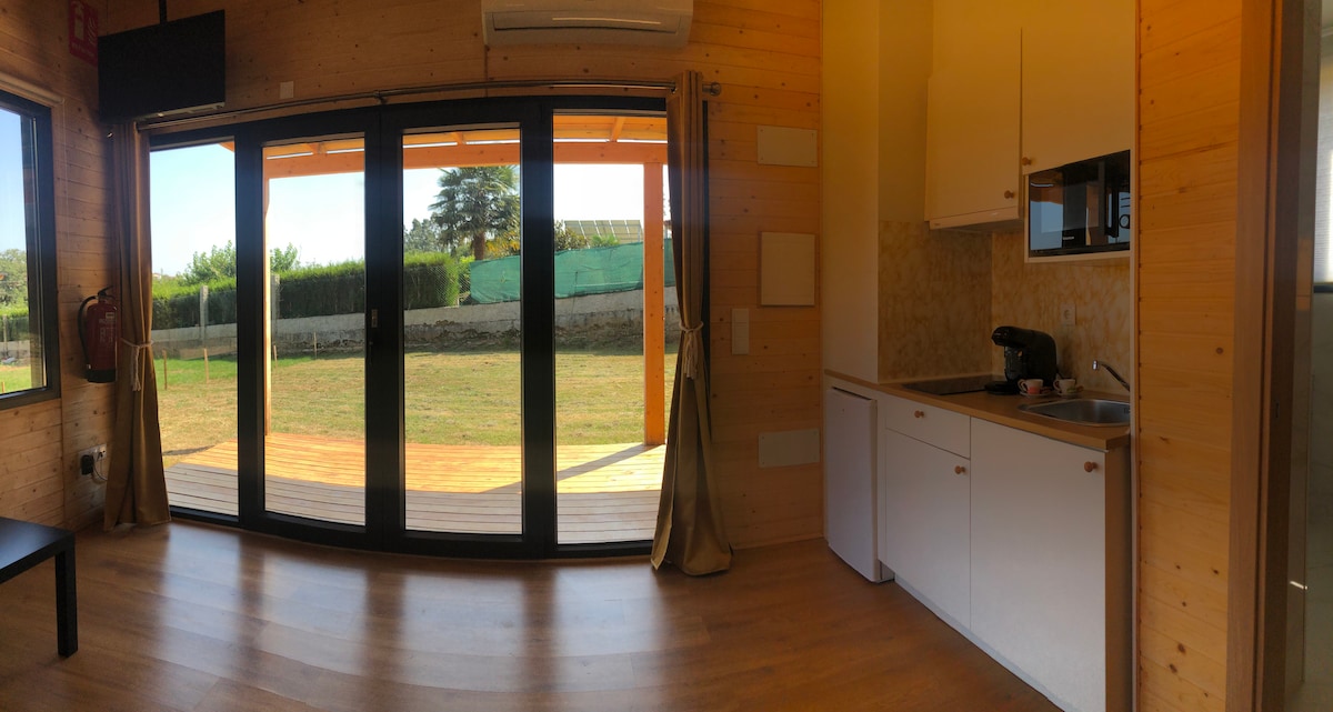이 숙소에서 평온을 느낄 수 있습니다. A Carballeira 오두막에서 온 가족과 함께 휴식을 취하세요. 통나무집은 40m2로 침실 2개, 욕실, 거실, 주방, 소파가 있는 테라스, 옆 정원으로 나뉘어 있습니다. 오두막은 산티아고 대성당의 위쪽을 포함하여 작은 숲과 도시의 아름다운 전망을 자랑합니다. 숙소는 자연으로 둘러싸인 매우 조용한 곳에 있지만 동시에 대성당과 역사적인 중심지에서 불과 1.8km 거리에 있습니다.