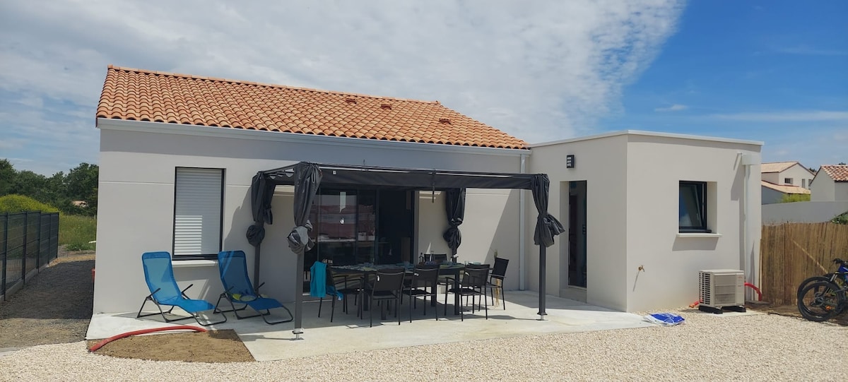 Maison neuve Noirmoutrine de 97m2 avec garage indépendant dans l'authentique quartier du Petit Vieil. Terrasse en bois exposée plein sud avec barbecue, jardin clos. Son emplacement est idéal ,à 100 mètres de la plage du petit Vieil et 700 mètres du centre du village du VIEL et de ses commerces : supérette, maison de la presse , bar restaurant. A 5 km du port de l'Herbaudière et 3,5 km du centre de Noirmoutier. 3 Vélos adultes et 2 enfants sont mis gracieusement à disposition en état.