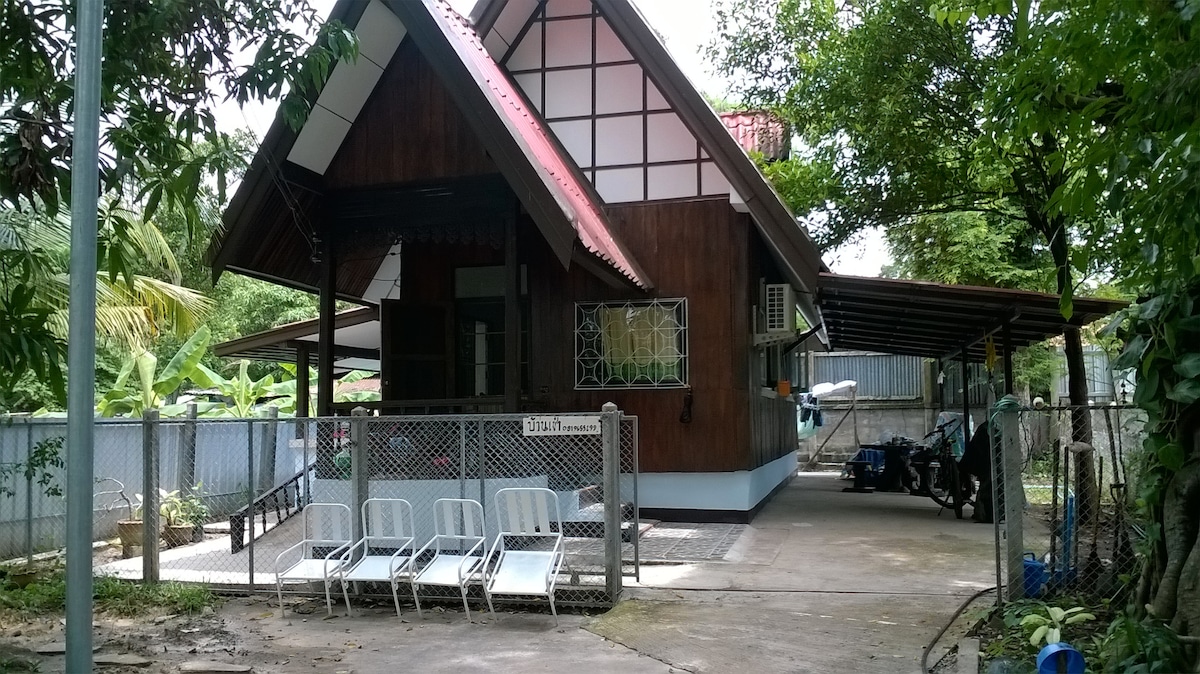 Thai style house in garden with large shade tree. There are a lot space for making a party in front of your house and a private parking your car. Our house is very near to well known local market, only two kilometers from downtown and 2.8 kilometer to Mekong river. The house owner will stay in garden and like to take care guest with her heart. We also have transfer service from bus station and airport to our wasuthan house.