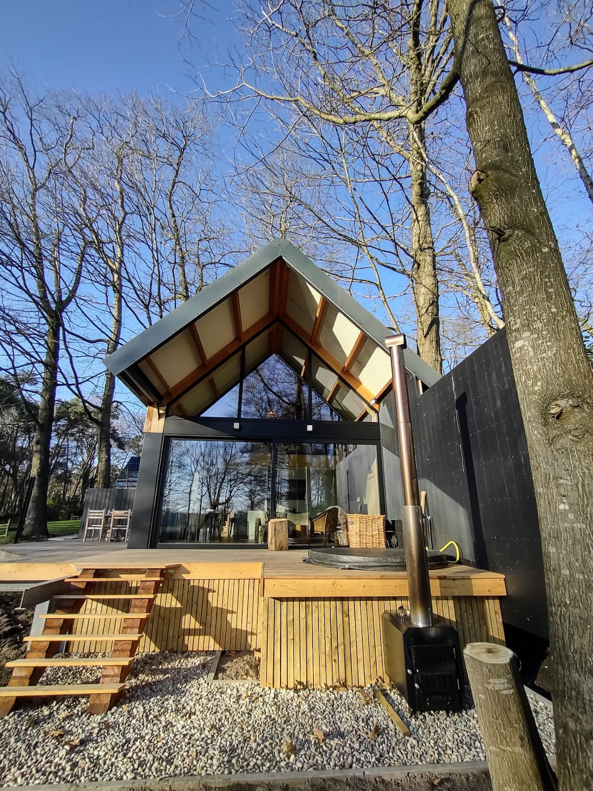 Step straight from your terrace into the 40 m² pool and make yourself at home. You’ll be staying in our stylish 54 m² pool house with a comfy seating area, big windows, a bar, an outdoor kitchen and a dining space. Light the stove, relax, and enjoy cosy evenings overlooking the hot tub and the pool. Our central location makes it easy to visit Ghent, Antwerp and Bruges — even by train. After a day out, come back to total peace and quiet in our large 2000m² garden. Private parking