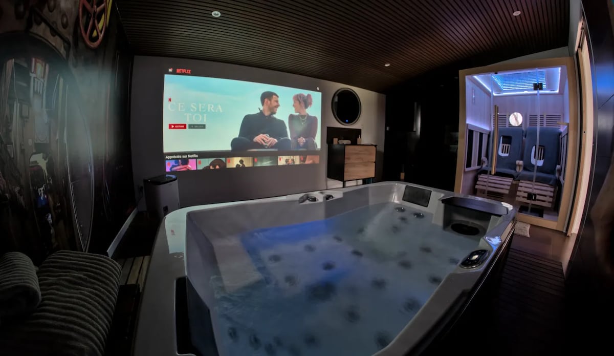 180cm 박스 스프링이 있는 70 ㎡ 의 넓은 스위트, 소파 베드, 좌석 공간, 전용 테라스, 월풀이 있는 고급스러운 욕실, 별도의 화장실과 시설이 완비된 주방이 있습니다. 예약 후 10시부터 19시까지 공용 공간의 사우나와 실내 수영장을 이용하실 수 있습니다. 이 숙소는 최대 4명 (및 아기) 까지 커플이나 가족에게 안성맞춤입니다. 별도의 출입구. 즐거운 시간을 보내세요 보증금 € 250 필요