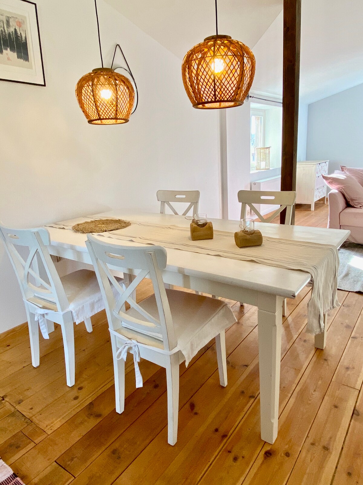 Unsere charmante Ferienwohnung "Schafstall" für 4 Personen liegt direkt am Feldrand und ist im modernen Landhausstil eingerichtet. Sie befindet sich über dem ehemaligen Stallgebäude und ist umsäumt von einem großen, eingezäunten Garten mit Blick über die Wiese. In der 84 qm Wohnung sind das Wäschepaket sowie Handtücher im Preis inbegriffen. Die Küche ist voll ausgestattet, bequeme Betten und ein großes Kuschelsofa machen den Aufenthalt zu jeder Jahreszeit gemütlich.