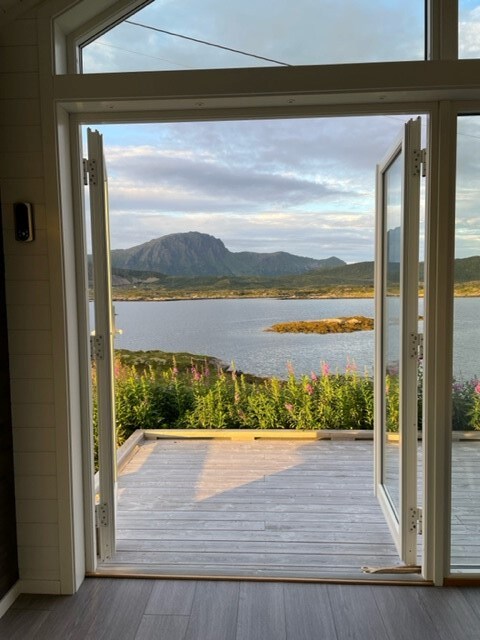 Nyrenovert hytte som ligger noen meter fra havet på Helgeland. Hytta ligger helt for seg selv med nydelig utsikt og sol fra tidlig til kl 2200 på kvelden. Det er veldig barnevennlig. Kajakk, kano , badedyr og 2 SUP er også mulig å bruke. Det er kun 500 meter til Sjokoladebrygga som er kjent for sin gode sjokolade og flotte beliggenhet. Kort vei til Dønnes kirke, Dønnesfjellet og matbutikke. Gode fiskemuligheter. Stor og fin terrasse mot havet med grill og bålpanne for kos.